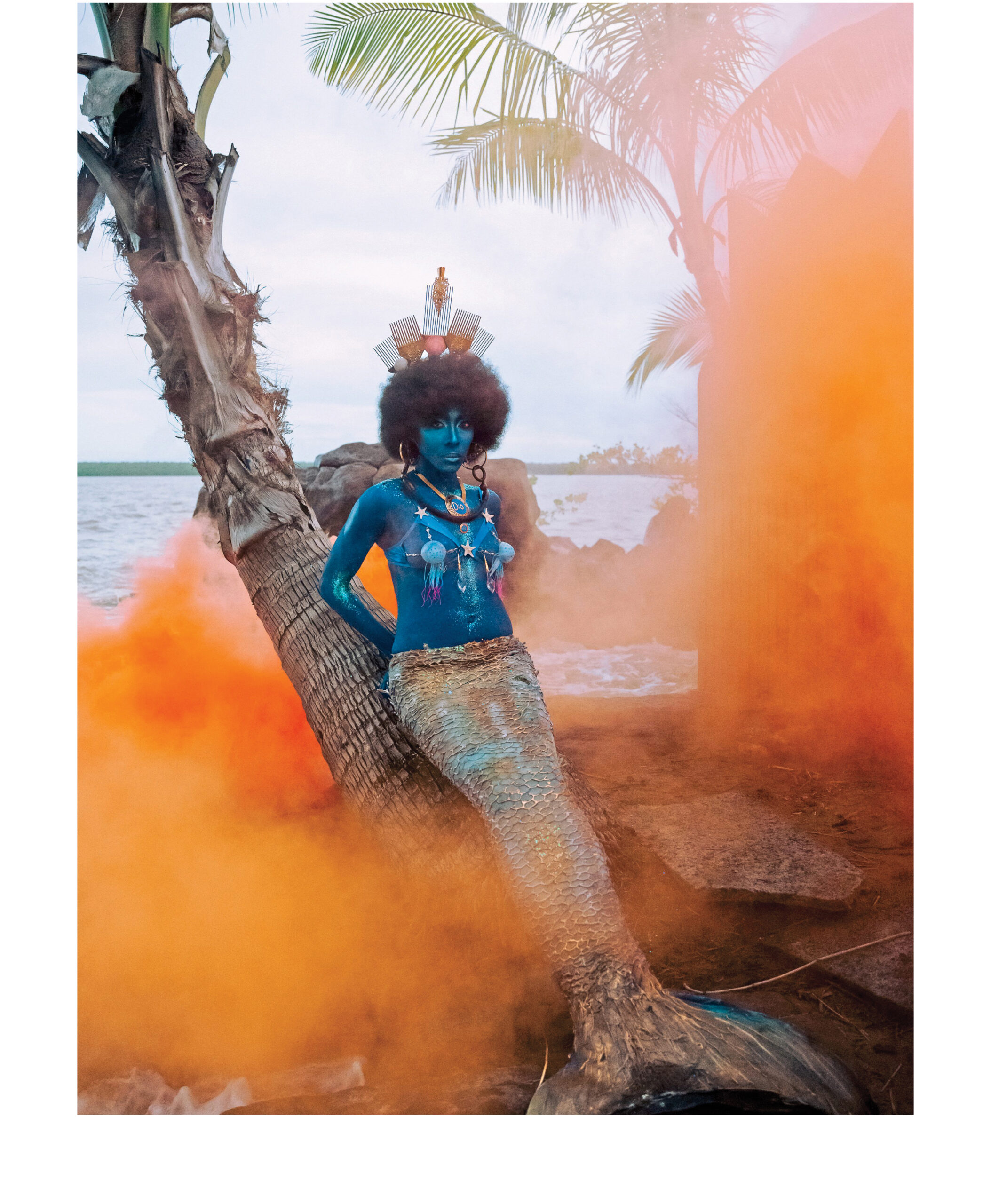 As a young girl, Ushigua was forced to marry and move to the city from an Amazonian town. In the piece, Montahuano attempts to grapple with the things her mother lost and tries to understand the worlds she inhabited. One especially striking image depicts the three long-haired daughters sitting in a line, almost melting into each other, as the forest looms behind them.