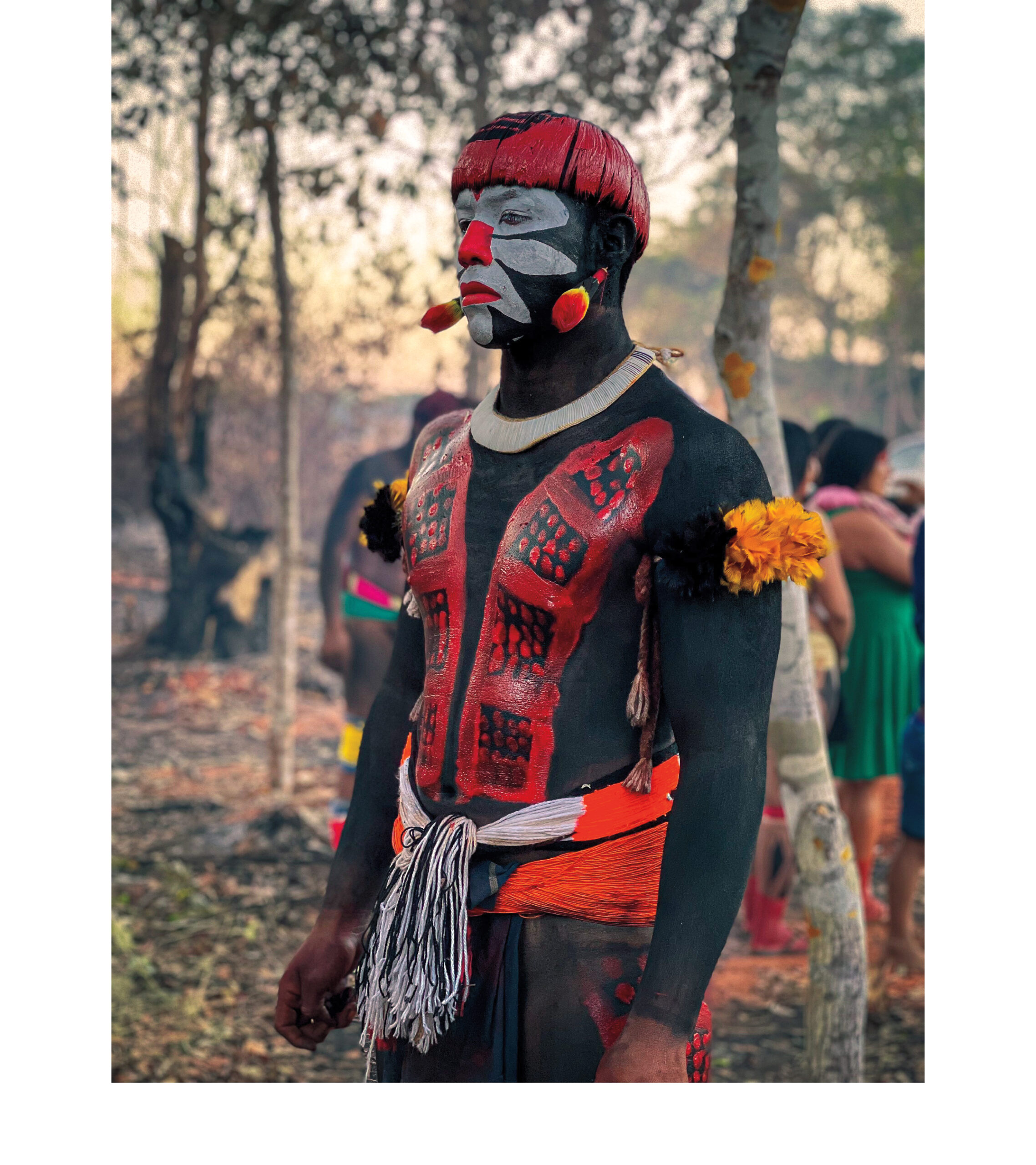 The exhibit steers clear of dwelling on the ongoing environmental catastrophe, instead making an indirect reference by noting that these forest civilizations, their languages and cultures, face new threats from human activity and the climate crisis.