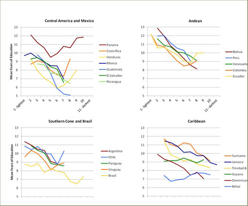 Our research shows that the lightest persons generally have the highest mean educational attainment with the darkest persons having the lowest. [See figure] Thus, nearly all countries in the Americas can be described as pigmentocracies.