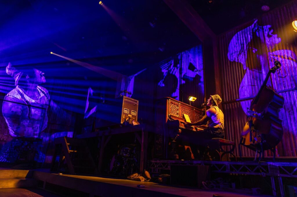 In fact, the recurrence of the past is an argument Mexodus makes directly in its sound. The musical employs looping, a technique whereby lines of music are recorded live at the start of each song and then layered on top of each other to create orchestration.
