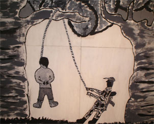 But the exhibition is much more than just a show case for the benefits of art therapy. The paintings are a stark reminder that rural violence continues in